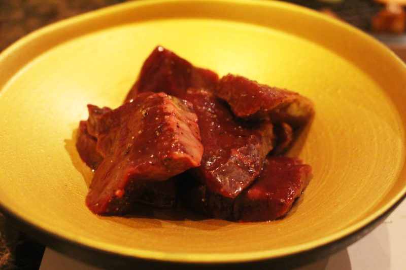盛り合わせとは別に、あか牛のハツも。なんですか、この厚さ。