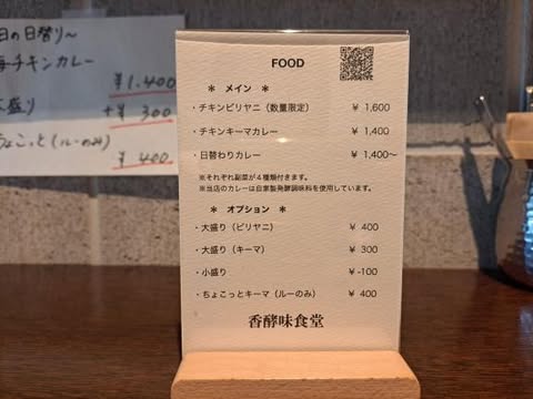 香酵味食堂のメニュー