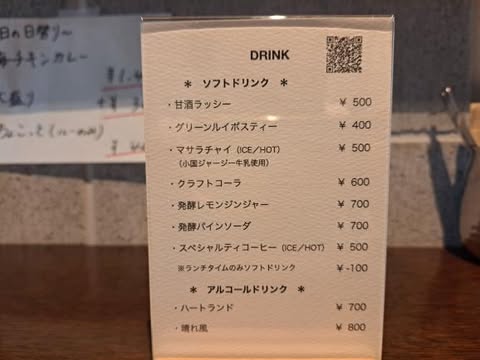 また、発酵に重点を置いているお店だからこそのドリンクメニュー、甘酒ラッシーや発酵レモンジンジャー・発酵パインソーダなどもあります。