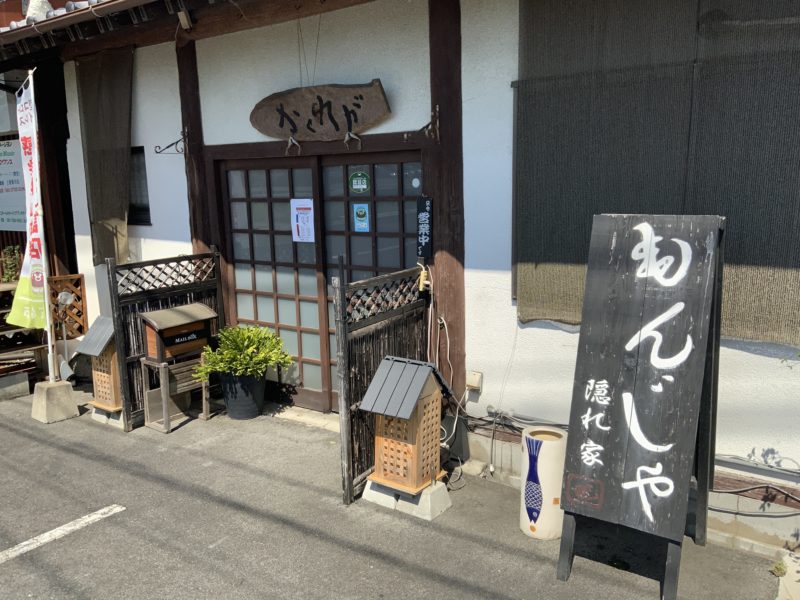 玉名市岩崎、繁根木川沿いにある「隠れ家もんじゃ」。玉名警察署のすぐ近くで、趣のある外観のお店。名前の通り、隠れ家のような雰囲気のもんじゃ焼き屋さんです。
