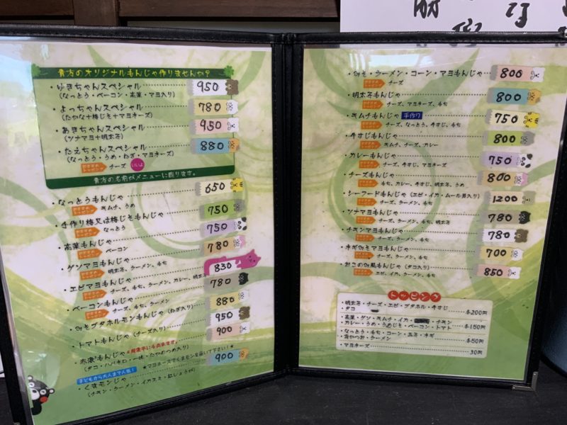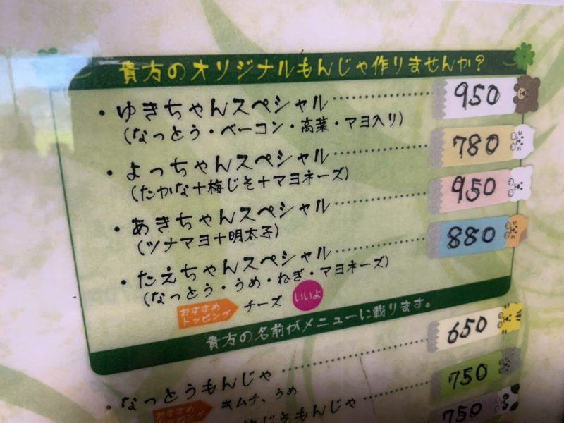 メニューが独特「たえちゃんスペシャル」や「クマもんじゃ」