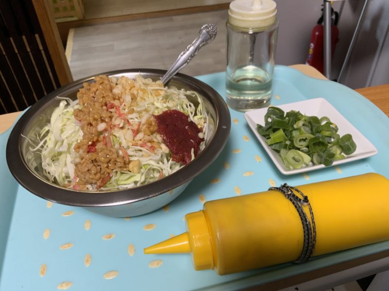 全部、お客さんが考えたメニューなんですって!なっとう、うめ、ねぎとさっぱりしてそうなので、「たえちゃんスペシャル」にしてみました!