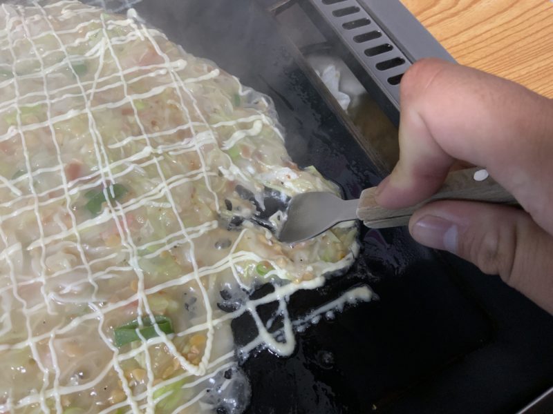 混ぜながら焼き上げて、マヨネーズをかけてできあがり!