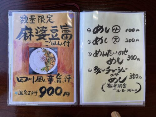 数量限定 麻婆豆富(ごはん付き) 温泉卵付き900円。
