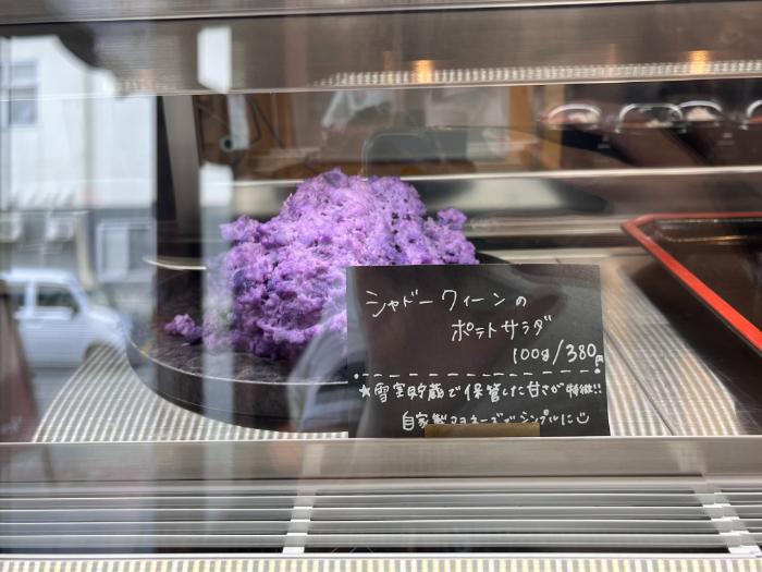 紫色が特徴のシャドークィーンは、雪を溜め込む「雪室」に、半年から1年もの長い間寝かせたものを使っています。蔵は温度が一定なので、じゃがいもが熟成されて甘さが増すんだそう。