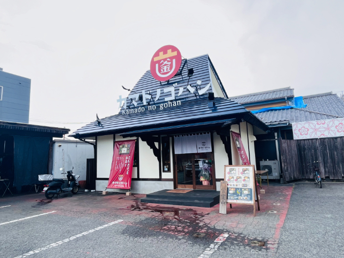 大きなカマドのイラストがインパクトのあるお店ですね。
