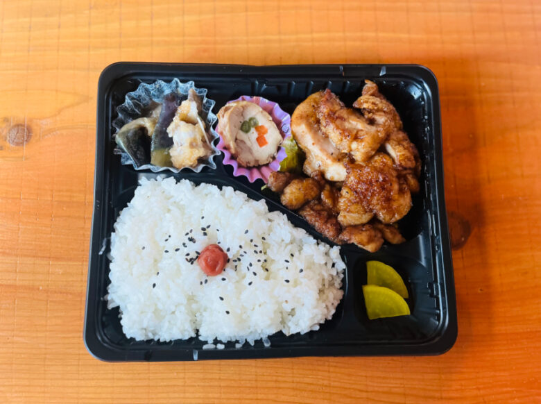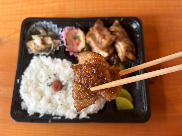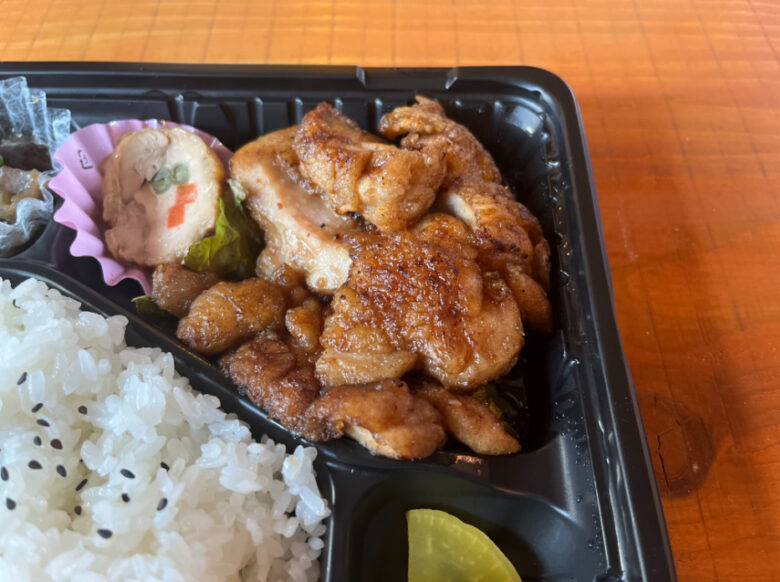 今回注文したのは日替わり弁当Bです。注文してからご飯を入れてくれるのでほかほかの状態。日替わり弁当のBはお肉料理がメインで、この日は照り焼きチキンでした。