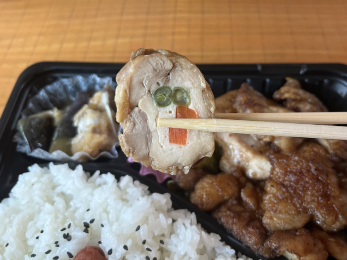 その他に、総菜が2種類入っています。1つ目は、野菜がチキンに巻かれたもの。家ではなかなか作らないので、凝った総菜は嬉しいですね。