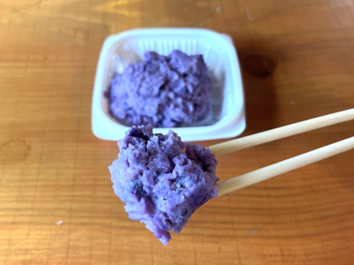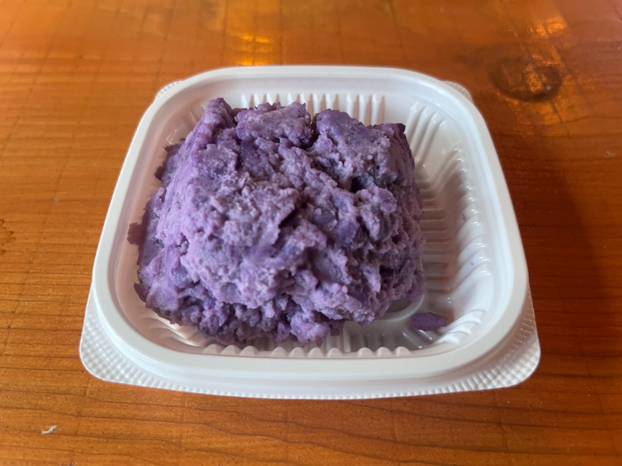 食べてみると、素朴な甘さのポテトサラダです。砂糖を一切使わず、マヨネーズとお酢、塩胡椒だけで味付けされていて、じゃがいも本来の甘さをダイレクトに感じます。