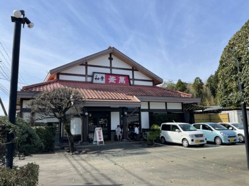 市内方面(国体道路側)から来たら、左手にあります。ジューシーとかヒライとか通り過ぎて、もうちょい行くと右手がくまもと菓房で左手が釜萬です。