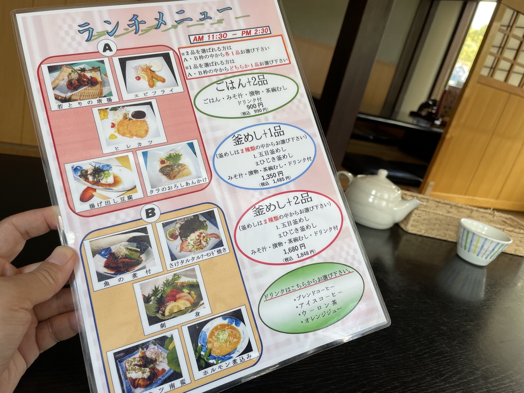 ①ご飯とおかずをAから1品とBから1品選ぶコース990円。