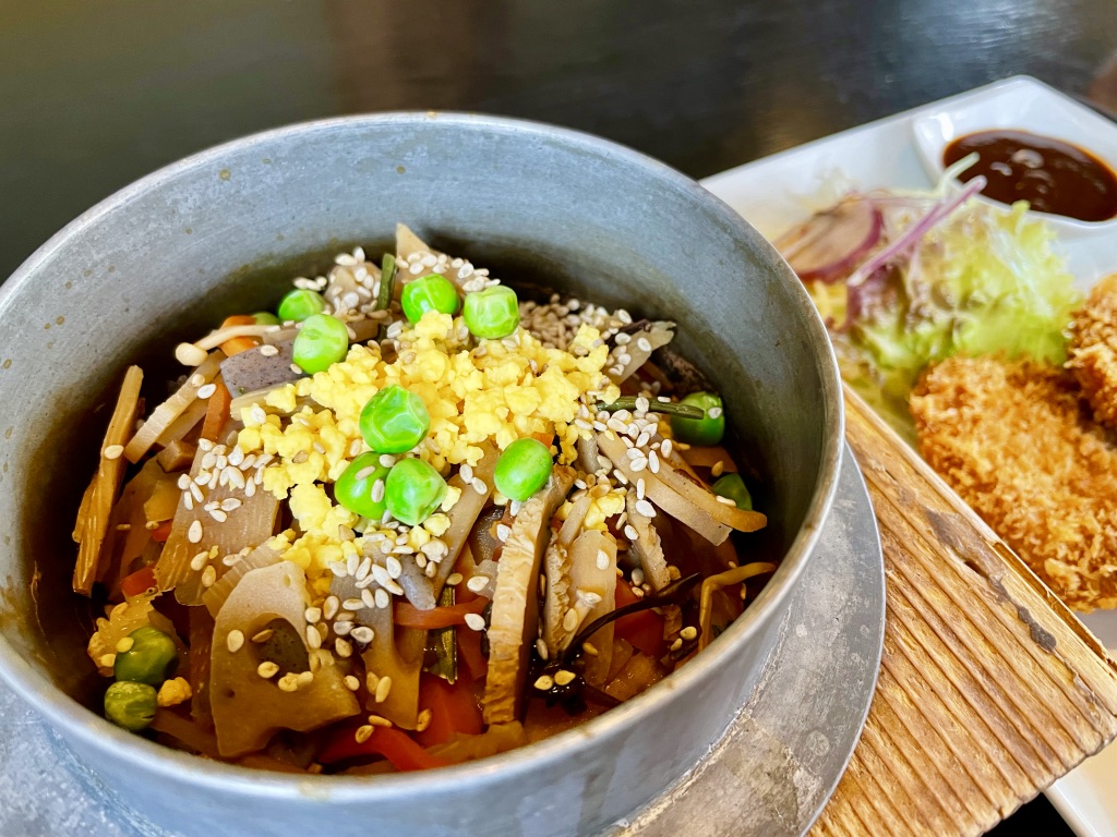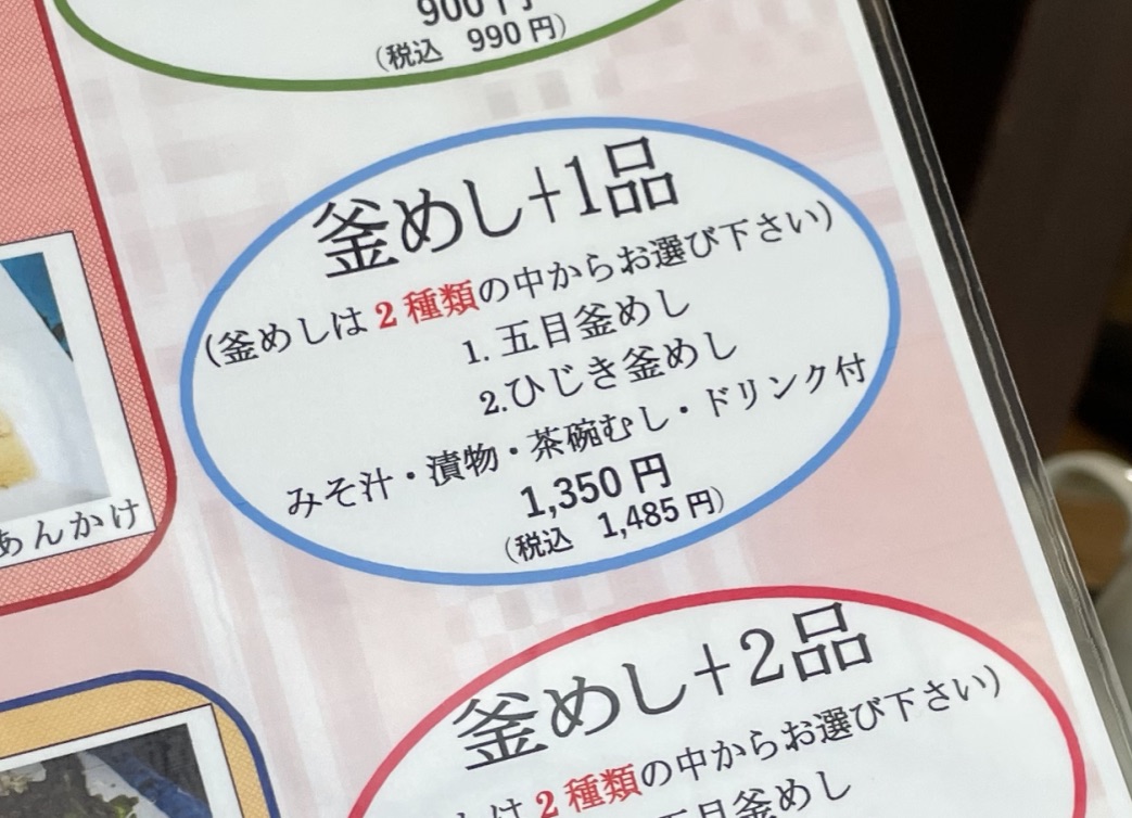 今回は②を注文します。釜飯食べにゃんでしょ!おかずはヒレカツにしました。