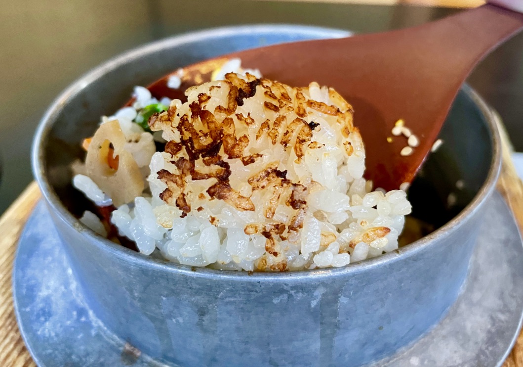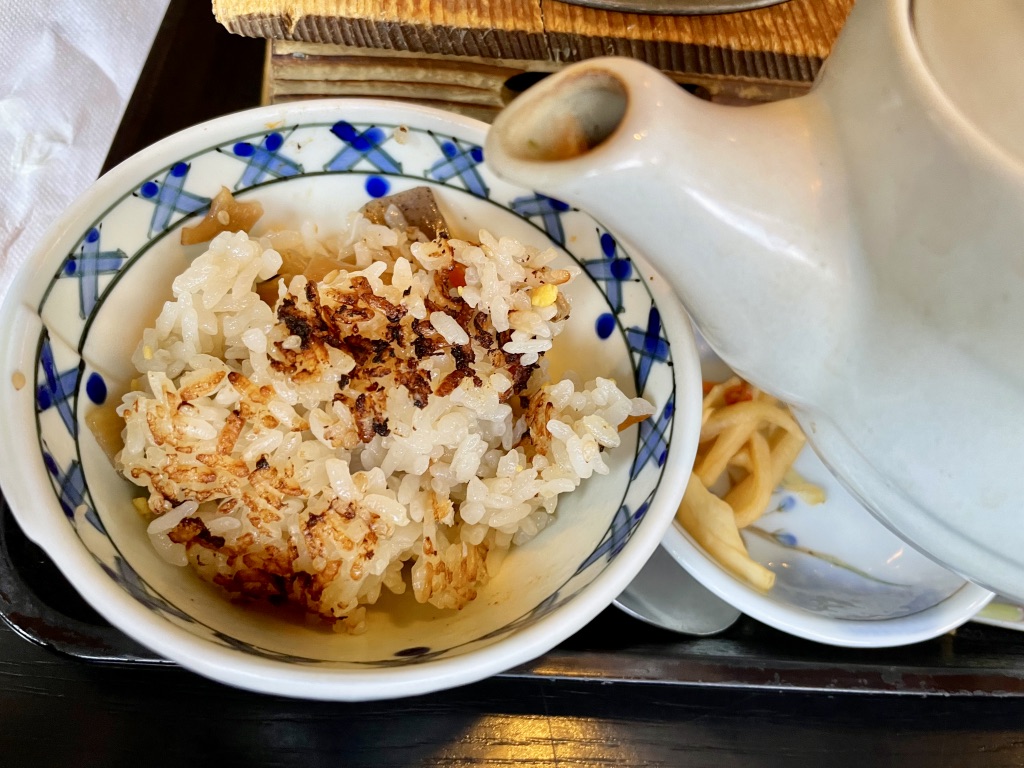 お茶の香りに押し出されるように、おこげの香りが世界を包み込みます。