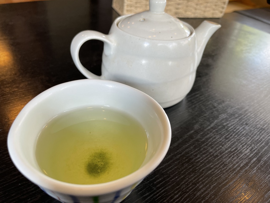 席に着くと、「わかってるよねぇ」と言いたくなる、急須に入ったお茶が出てきます。