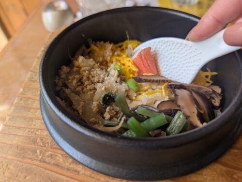 釜飯の蓋を開けると、ふわ~っと湯気と一緒に、良い香り!