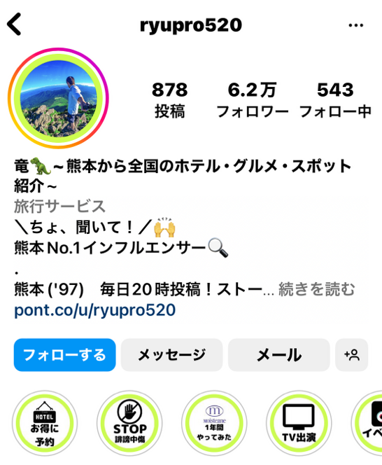 で始まる動画に集まったフォロワーは6.2万人。熊本を中心に最近では関東のネタまで紹介してくれるインフルエンサーです。