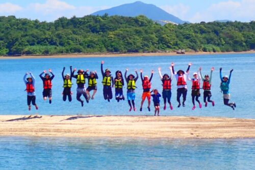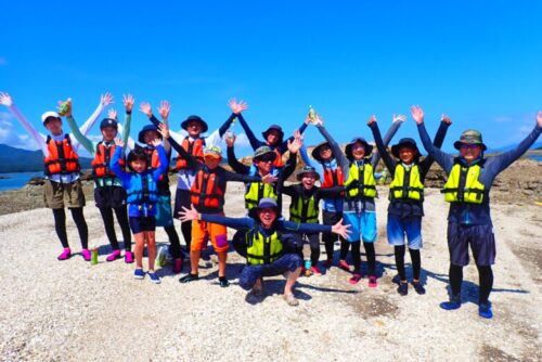 目的地の無人島に到着するまで30分ほど漕いだでしょうか。ついたらみんなで記念撮影!