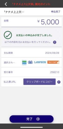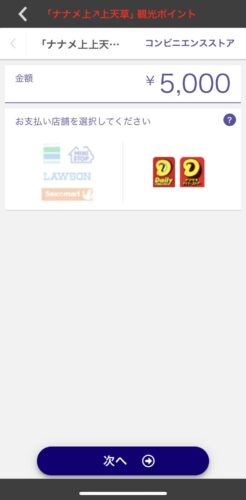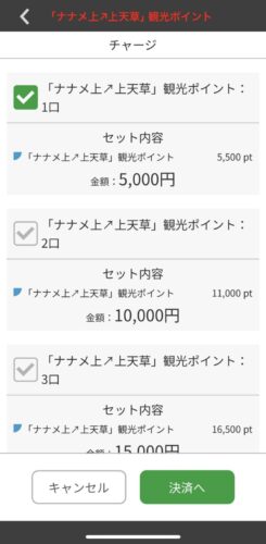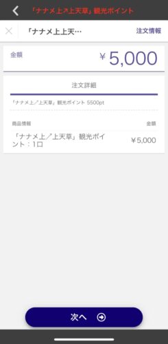 金額を選べます。ここで5,000円を選択し決済ボタンタップすると
