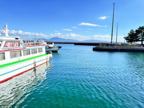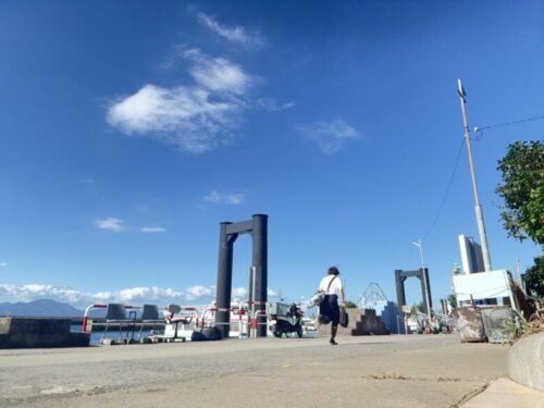 フェリー(片道800円)に乗り潮風を浴びながら向かいます。カヤックの時もだけど、海の上はほんと涼しい。