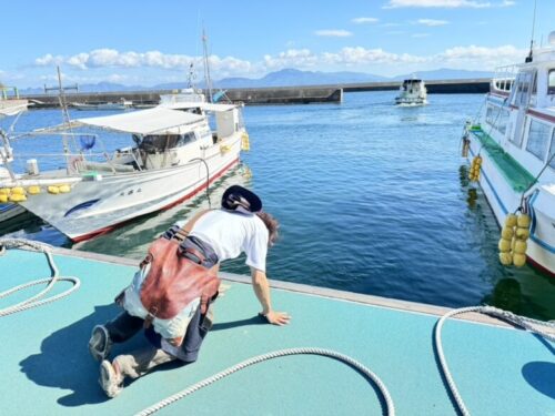伊藤に水責めをしているのが、インストラクターの船原さん。上天草の夏男・熱男・親父ギャグ男です。