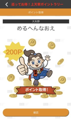 ポイントで支払い、ポイント200PをGETして、最後の目的地(観光地)「めるへんなおえ」を目指します。