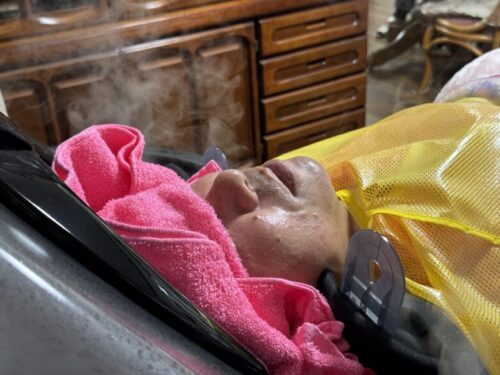 ヘッドランドリーで綺麗にフワフワにしてくれます。ヘッドランドリーって直訳すると頭洗濯じゃん。最初に5分間で頭を蒸らし毛穴を広げて、そこに一気にお湯を噴射マッサージします。