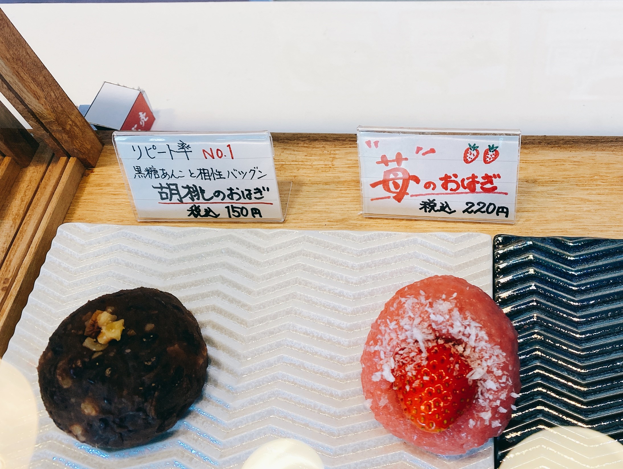 続いて「苺のおはぎ(220円)」「胡桃のおはぎ(150円)