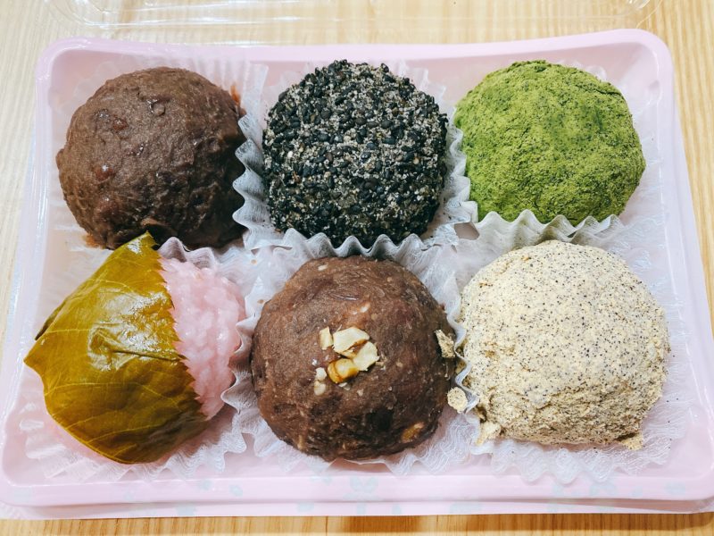 まずは右側から「ちょこおはぎ(140円)」「さくらのおはぎ(130円)」「天草塩おはぎ(180円)」