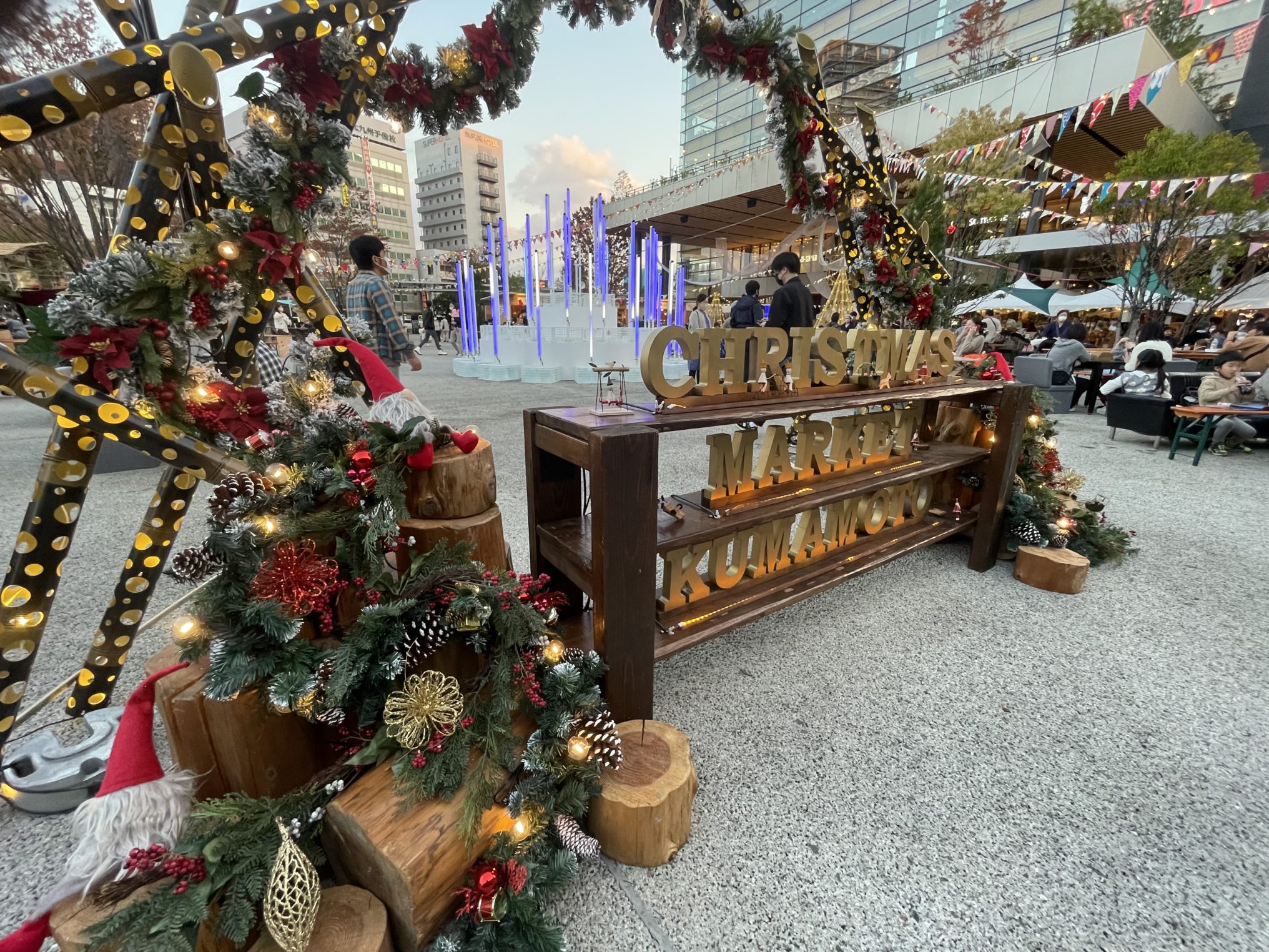 現在熊本駅前ではクリスマスマーケットが行われており、賑わいを見せております。