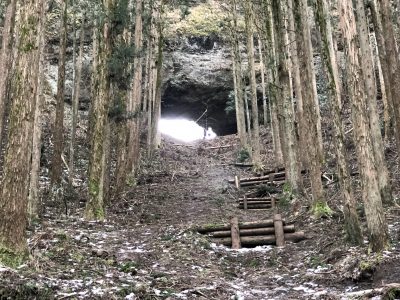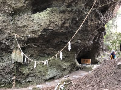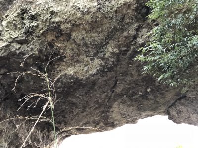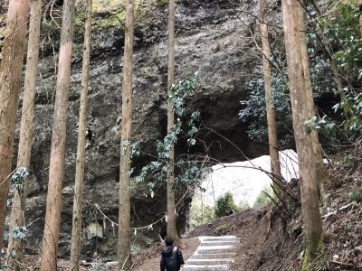 巨大な岩に突如空いた大きな穴。ここから風が吹き込んでいます。2基目の鳥居あたりから空気が変わったように感じたのはきっとこの風だ、と確信しました。