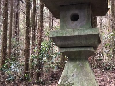 伊邪那岐命、伊邪那美命、石君大将軍を祀ります。参道には、100基近くの灯篭が並び壮観です。神殿後方の穿戸岩には、健磐竜命の従者鬼八法師が蹴破ったといわれる縦横10メートル以上の大風穴(穿戸岩(うげといわ))があります。