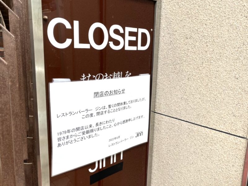 そんな同仁堂 レストラン・パーラー Jinnは6月に43年の営業に幕を閉じてしまいました。