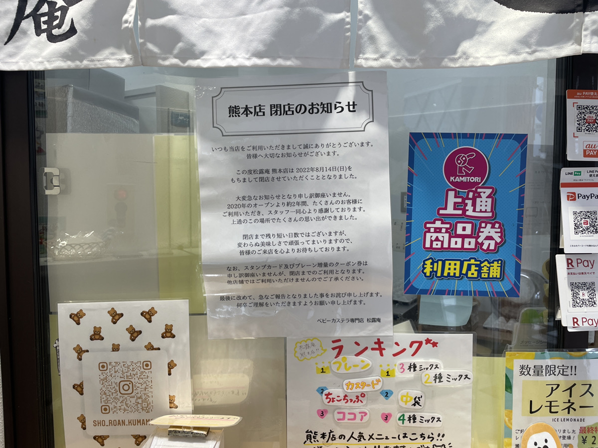 ベビーカステラ専門店 松露庵 8月14日閉店