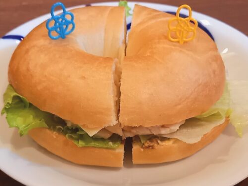 お隣のお客様が注文していたベーグルサンド、お願いして撮らせていただきました。