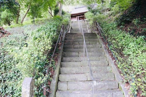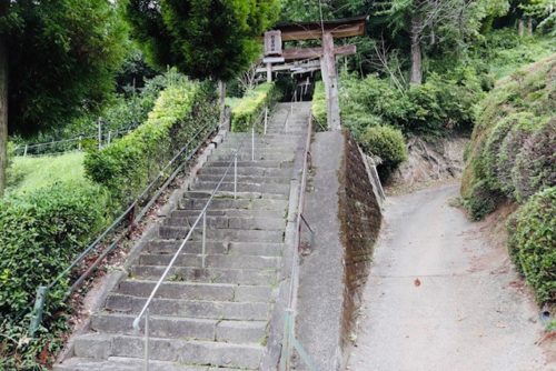 植木をぶらりとしているときに、何とも言えない佇まいの神社を発見。住宅の間に突如現れた細い細い階段はまるで異世界への入口のようでした。