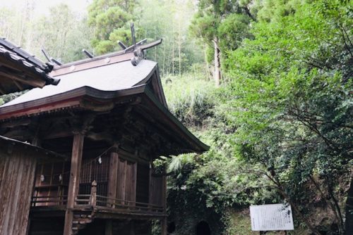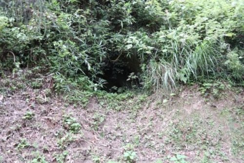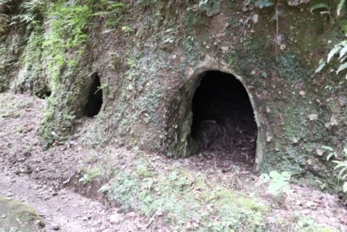 この横穴群、神社の裏に24個があるそうで、確認できるのは6個。