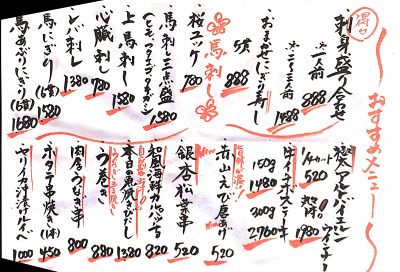 「旬酔 かなで」の名のとおり、旬にこだわるお店だからこそ、お料理のメニューは頻繁に変わっているようで、すべて手書きでした。
