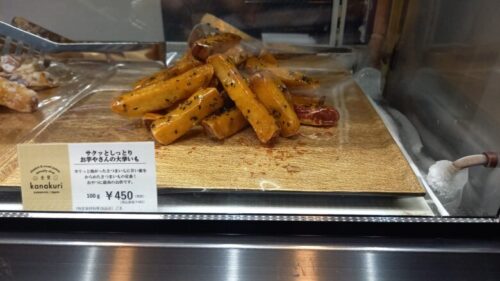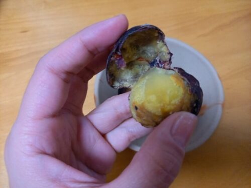 …帰り道にちょっとフライングして大学芋をつまんだら、外側の白い砂糖のサクサクが癖になる食感で、あっという間になくなってました。