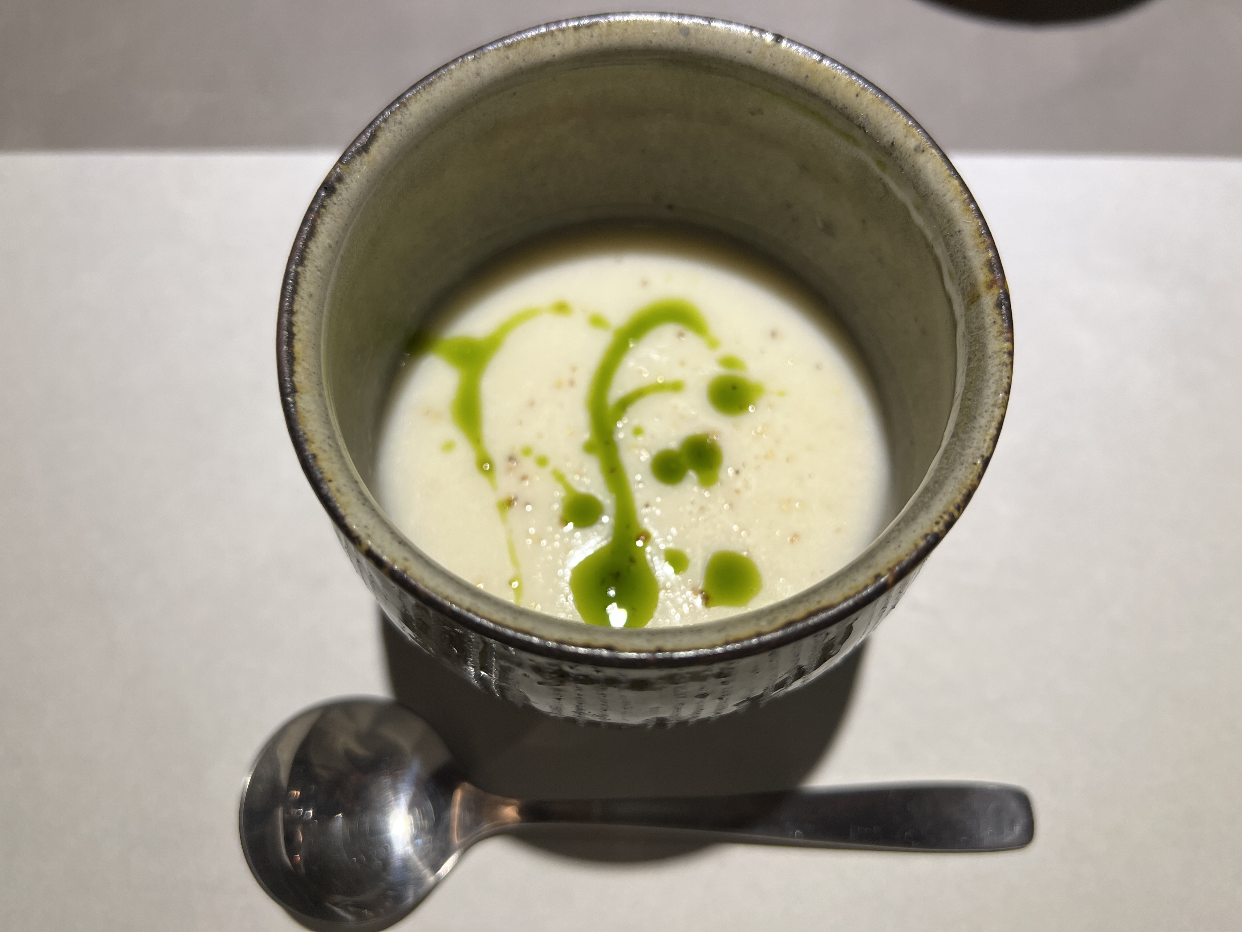 スイーツとドリンクの他に季節のスープも添えられるランチセット。葉の部分まで余すことなく美しく彩られたカブのスープは、なんだかホッとする優しい味がしました。