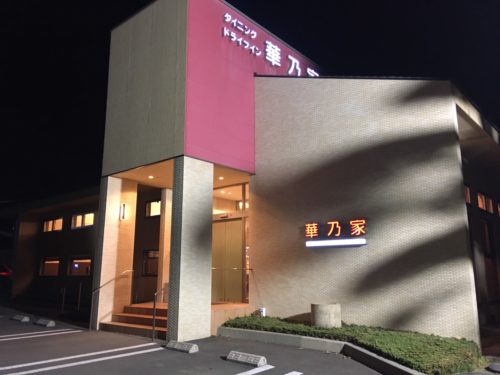 合志市野々島のユーパレス弁天の近くにある「華乃家」。看板が大きく駐車場も広いので、車で立ち寄りやすいお店です。こちらのお店は、お昼も夜もメニューが同じで同料金ということで、今回は夜にお邪魔してみました。