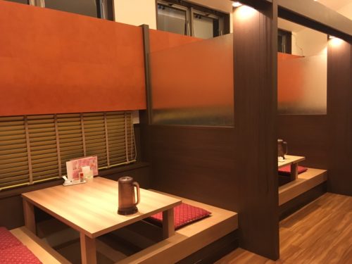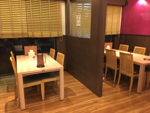 店内は広々としていて、厨房前のカウンター席に、仕切りのあるテーブル席。