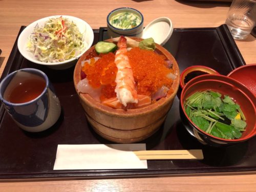 こちらの海鮮丼、お吸い物だけでなく、サラダや茶碗蒸しまでついてくるのも嬉しいところです。