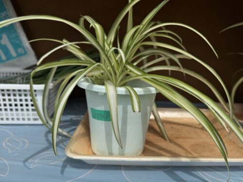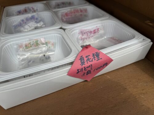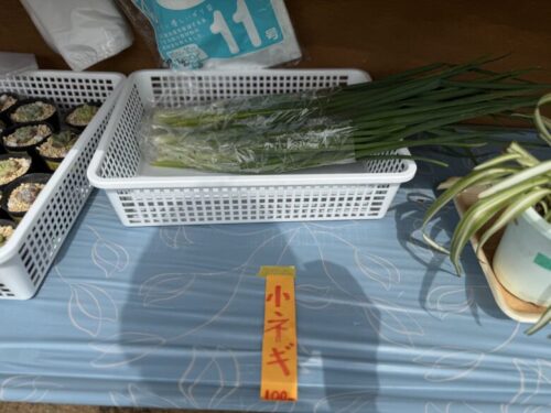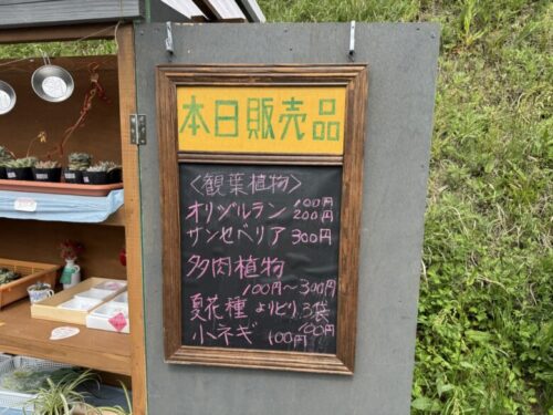 本日の販売品、オリヅルラン100円、サンセベリア300円、多肉植物100円~300円、夏花種3袋100円、小ネギ100円、となっておりました。