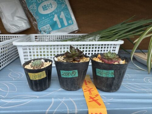 購入するのは小さな鉢に植える多肉植物にしました。100円、200円、200円で合計500円のお買い物。