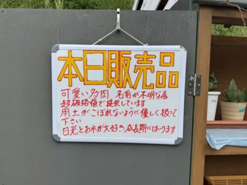 「多肉は何百種類あるそうで、まだ100種類にもみたいない程度しか育てていません。どれも可愛くて沢山の多肉を仕入れて皆さんによりやすく提供したいデス」と綺麗な字で書いてありました。