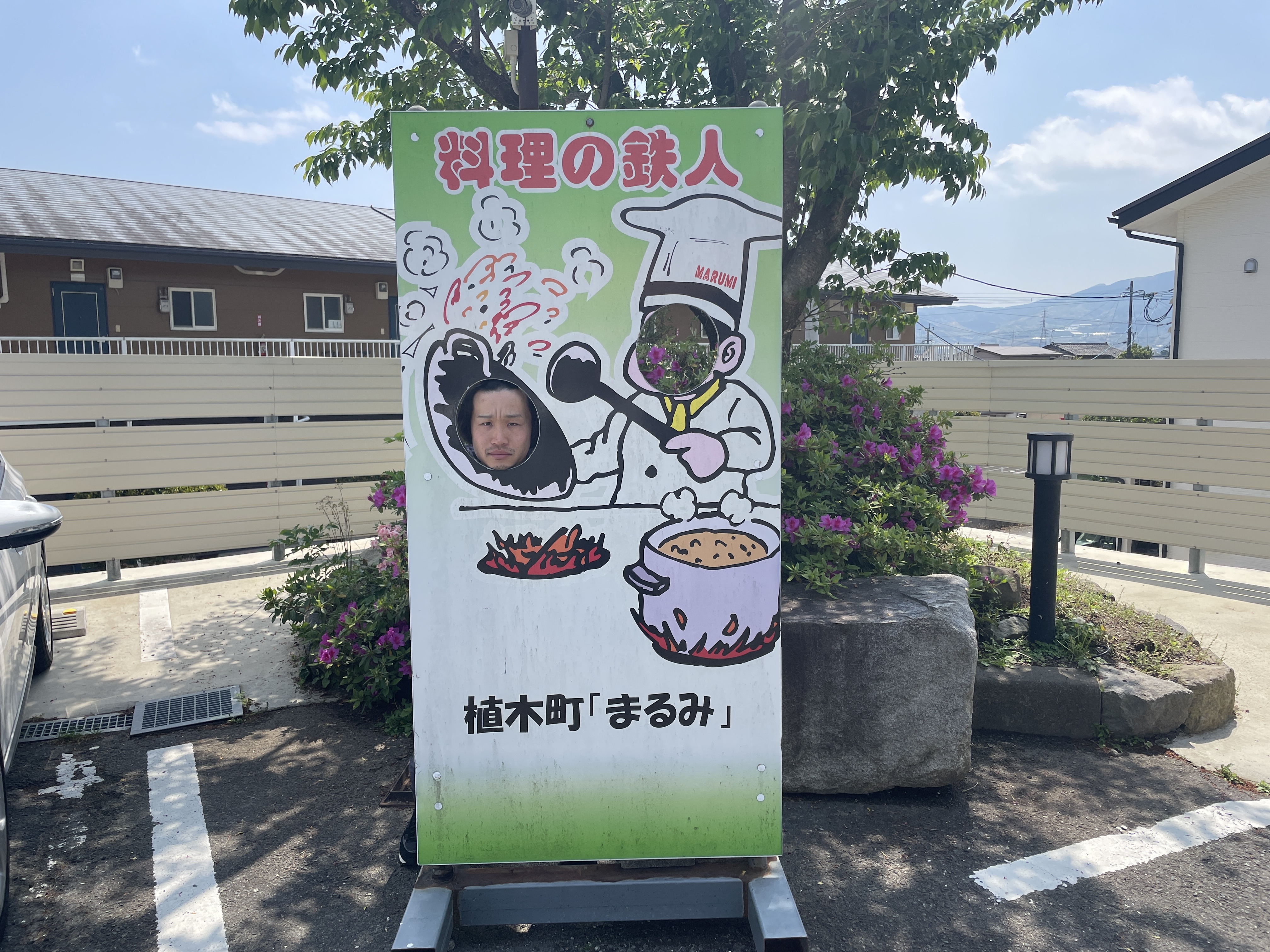 料理される側と料理をする方になりきれる、植木町名物の顔はめパネル