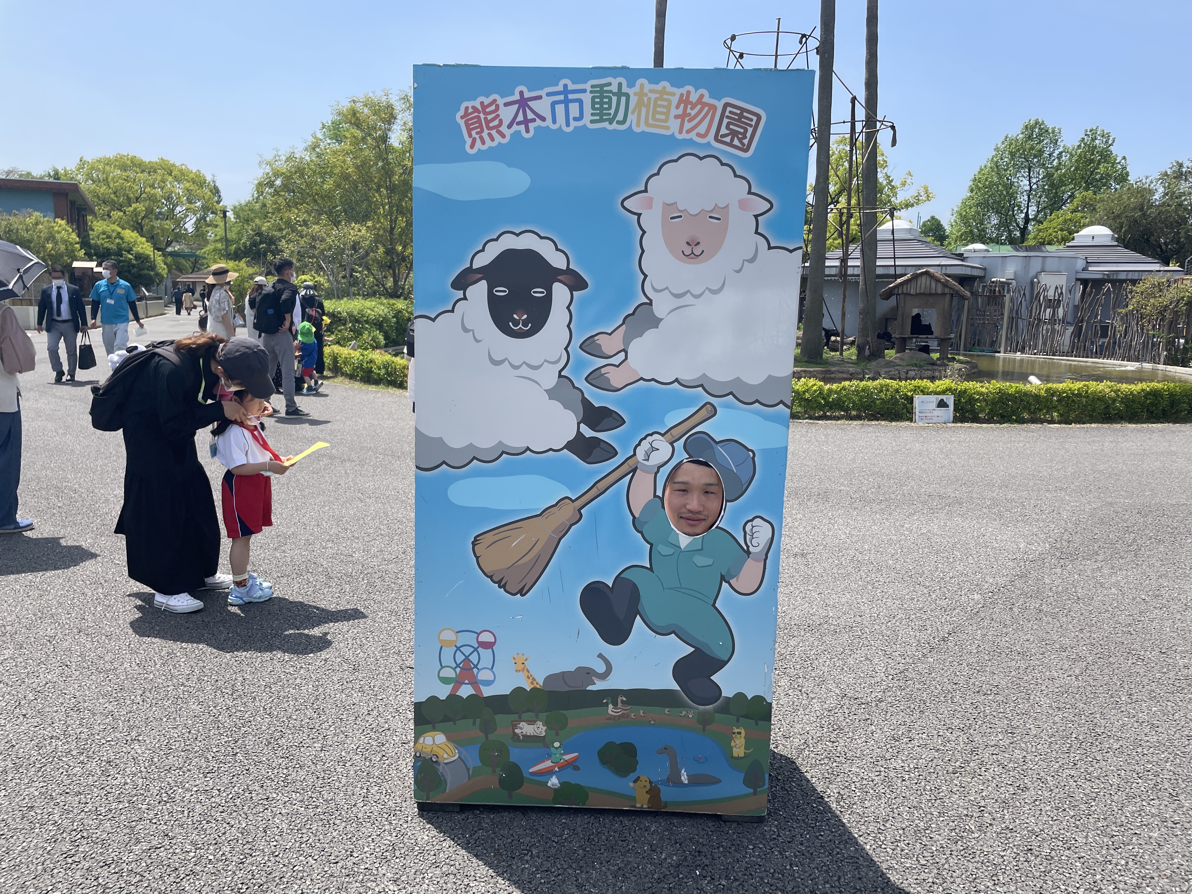疑問な顔はめパネルがありました。なぜヤギではなく、飼育員さんの顔はめ…