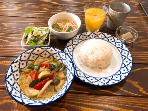 どれも気になるメニューですが、今回は「日替わりランチ」と「グリーンカレー」をご紹介します。