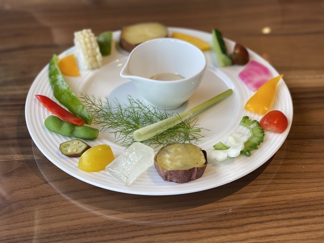 バーニャカウダのほとんどは、自家製の朝一で採れた新鮮な野菜を使用しています。