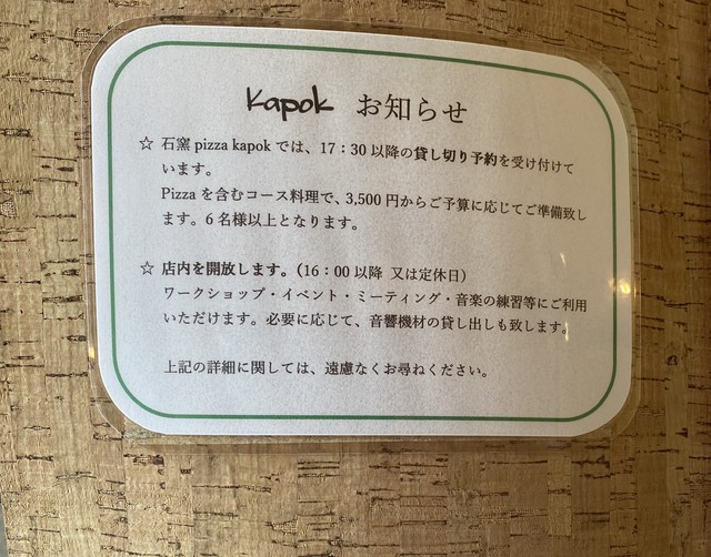 緑の看板に「Kapok」と書いてあったので、ここが石窯ピザの店だと分かり早速店内へお邪魔してみることに。